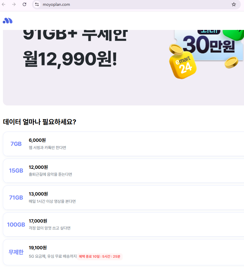혹시 요금제 선택이 어려우시다면 댓글 남겨주세요. 가성비 요금제를 추천해 드리겠습니다!